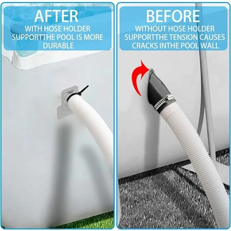 Vérifiez le modèle support de tuyau de piscine avant d’acheter :Supports de tuyau de piscine convient aux tuyaux jusqu’à 38 mm de diamètre, ce qui correspond à la taille de la plupart des piscines du marché. Peut facilement supporter un poids de 5 kg.Support de tuyau d’eau convient à toutes les piscines courantes avec un diamètre de tuyau de 26 à 38 mm.